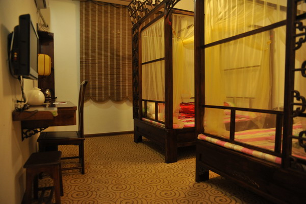 仿古家具以及配備高檔的現(xiàn)代化衛(wèi)浴和電器設(shè)施,隔音防噪。獨(dú)立衛(wèi)生間、24小時熱水、冷暖空調(diào),以及無線上網(wǎng)。
