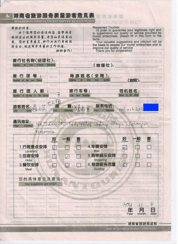 馬來(lái)西亞徐小姐一行7人旅游質(zhì)量回饋
