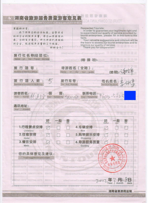 馬來西亞林先生一行5人旅游質量回饋