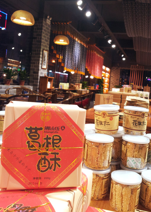 在我快遺忘這件事的時(shí)候,接到了小江的電話。小江說在張家界找了很多地方,才在湘小伍·家找到了我想要吃的葛根酥,也只有湘小伍·家才有這個(gè)產(chǎn)品。湘小伍·家除了有傳統(tǒng)的葛根粉,也有了新的產(chǎn)品——葛根全原粉,生產(chǎn)工藝是:山中挖掘——水洗表皮泥土——切片——烘干——將葛根片直接磨成300目的粉,此工藝保留了葛根的所有有用物質(zhì)和微量元素。因?yàn)橄鄬?duì)來說淀粉的比例變少,沖制時(shí),不會(huì)成很稠的糊狀。為保證所有微量元素的價(jià)值,建議用攝氏100度的開水涼至80度時(shí)沖飲,效果最佳,而且葛根原本的香味更濃。為更方便食用,湘小伍·家用葛根粉、葛根全原粉與面粉按4:6的配比,研發(fā)了“葛根酥”產(chǎn)品,用烘培的方法,采用傳統(tǒng)的包裝形式,不僅風(fēng)味獨(dú)特,而且民族特色鮮明,可算是最接地氣的張家界土特產(chǎn)品了,產(chǎn)品一上市,就得到了廣大市民和游客的認(rèn)同與喜愛,產(chǎn)品極其暢銷。我很快收到了小江寄來的快遞,打開快遞一看見包裝就讓我愈發(fā)的想家,小時(shí)候過年走親戚帶禮品的老式包裝,懷舊的感覺讓我想起很多回憶,再拆開來品嘗一番,外婆手藝的味道也在嘴里蔓延……
