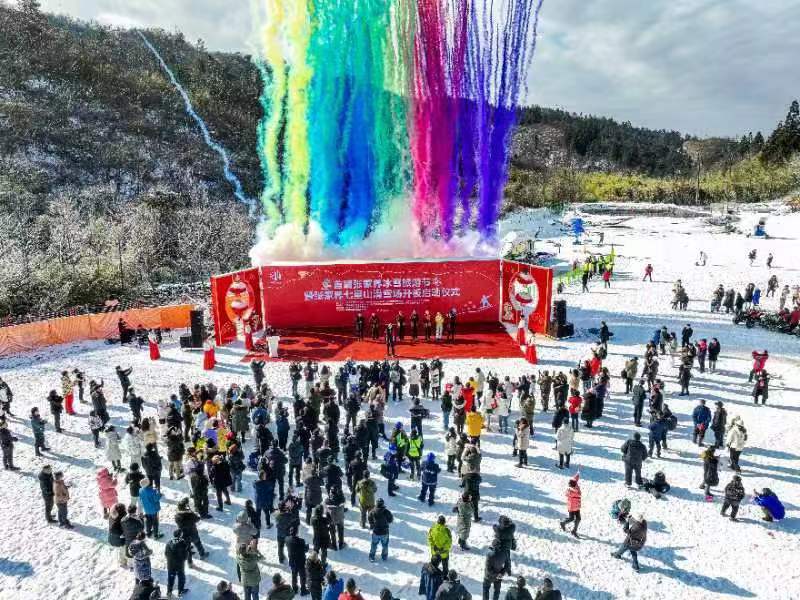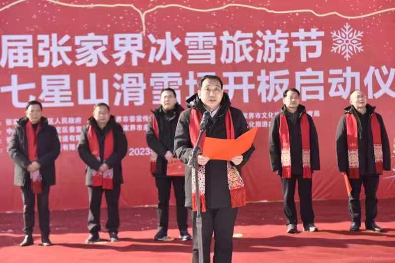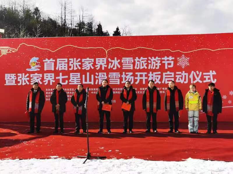 以雪為樂(lè),冰雪為媒。1月18日,海拔一千余米的張家界七星山旅游度假區(qū)里熱鬧非凡,來(lái)自市直各單位、永定區(qū)直各單位、旅行社、特邀冰雪運(yùn)動(dòng)團(tuán)體以及官方媒體、自媒體代表歡聚一堂,共同見(jiàn)證首屆張家界冰雪旅游節(jié)開(kāi)幕和七星山滑雪場(chǎng)開(kāi)板儀式。