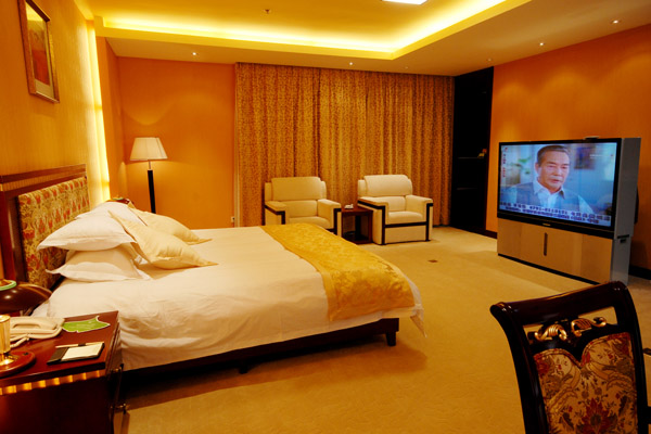 專家村賓館是按準五星級賓館標準修建的豪華型涉外旅游飯店?偯娣e44000多平方米,地理位置優(yōu)越,整體建筑雄偉,內(nèi)部結構考究,既充滿了現(xiàn)代文明氣息,又孕育著古老的湘西名族文化。走進賓館大堂,寬敞明亮,金碧輝煌,處處散發(fā)著湘西名族文化的芳香,使人體驗到一種富貴高雅的享受。賓館現(xiàn)有豪華總統(tǒng)套房2個,豪華商務套房6個,標準客房288間,室內(nèi)設施齊全.舒適.安靜.衛(wèi)生.是度假.療養(yǎng)的理想場所。現(xiàn)有大小中西餐廳9個,可同時容納700多人就餐,館內(nèi)還設有商場購物.物品寄存.票務代購.衣服洗燙.美容美發(fā).桑拿按摩.酒吧咖啡.大型劇場等服務項目。