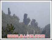 靠左的石峰似擱筆的“江山”。此景變化萬(wàn)千,日照霞染生輝,云霧涌動(dòng)時(shí)隱時(shí)現(xiàn),春月透過(guò)花叢,五層峰巒相迭。