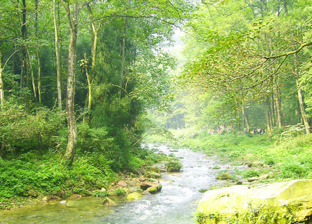 那么金鞭溪究竟美在哪里呢?慢慢往下看吧!金鞭溪全長大約7.5千米,沿途有著名景點(diǎn):閨門巖、觀音送子、金鞭巖、神鷹護(hù)鞭、醉羅漢、師徒取經(jīng)、劈山救母、長壽泉、文星巖、雙龜探溪、秀才藏書、豬八戒背媳婦、紫草潭、千里相會(huì)、跳魚潭、重歡樹、駱駝峰、水繞四門等等。而且在這里有著清新的空氣,曾經(jīng)有一個(gè)外國人把這里的負(fù)離子作了一個(gè)比喻,他說把這里一立方厘米的負(fù)離子變成錢的話,可以值很多美圓呢!所以,朋友們要是嫌張家界248的門票貴了的話,你不防多吸幾口,把錢給賺回去。要是你還怕賺不回的話,沒關(guān)系,你用個(gè)干凈的塑料袋多裝點(diǎn)兒,帶回去了再吸,比你在市場上買的氧力得要好多了哦!純天然無污染的呢!只是金鞭溪最美麗也最精華的是前半程(也就是金鞭溪的起點(diǎn)到千里相會(huì)處),那在這里肯定就還有個(gè)后半程(也就是千里相會(huì)到水繞四門了)。