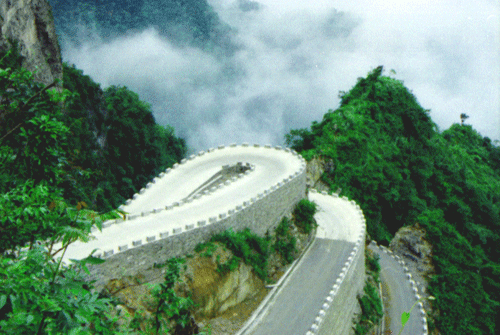 在穿過天門隧道后,就可以欣賞公路奇觀了,這時(shí)俯瞰通天大道,領(lǐng)略那蜿延迂回的旖旎風(fēng)采,在這么壯觀的自然與人文結(jié)合的奇觀面前,能使人油然而生一種內(nèi)心的最深刻最奇特最形象最讓人遐思的感慨.