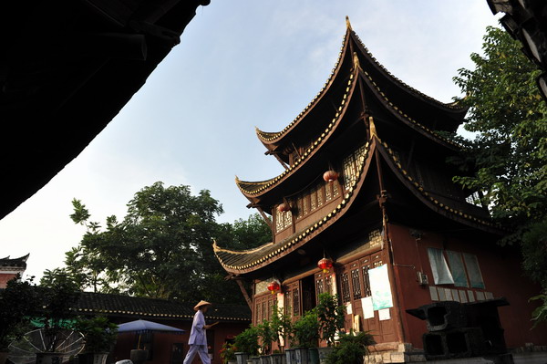 文廟對岸便是觀音閣,碧水連天,佛殿前青煙裊裊,禪房門外,芊芊細(xì)草,夕陽西下催人忘返。我心中有一心愿,待到晚年,在古乾州城內(nèi)租一板房,端一杯清茶,巨頭紅日看飛鳥,靜坐山亭聽暮禪。