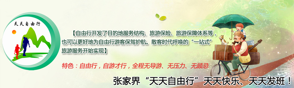 “天天自由行”是由(張家界市中國(guó)旅行社、張家界海外國(guó)際旅行社有限公司、張家界中世國(guó)際旅行社有限公司、張家界天馬國(guó)際旅行社有限公司、張家界中青旅國(guó)際旅行社有限公司、張家界市青年旅行社有限公司、張家界湘西青年國(guó)際旅行社有限公司、中國(guó)旅行社總張家界公司等35家旅行社)共同開(kāi)發(fā)的張家界新型旅游產(chǎn)品,我們是根據(jù)當(dāng)前旅游的發(fā)展趨勢(shì),客戶群體所需求而進(jìn)行;“天天自由行”產(chǎn)品自由度和豐富度將是客戶的主要訴求;同時(shí),“天天自由行”也將主張服務(wù)能力的回歸;“天天自由行”張家界暢游無(wú)極限! 隨心而行,從這里開(kāi)始!  “天天自由行”帶給你不一樣的輕松和驚喜!